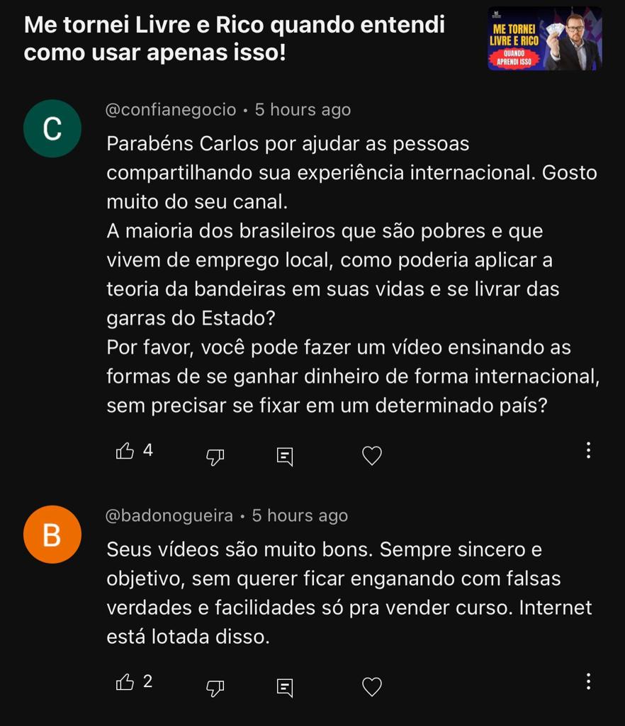 Como fundador da Brasileiro Sem Fronteiras, Carlos dedica-se a orientar brasileiros que buscam segurança, redução de impostos, proteção de patrimônio e uma vida mais próspera no exterior. A organização tem ajudado milhares de pessoas a construírem estruturas globais sólidas, planejarem sua imigração e conquistarem maior autonomia frente às incertezas do Brasil.